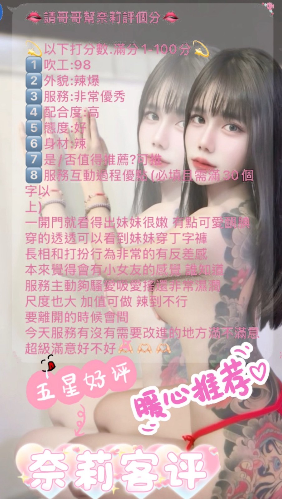 👍項目:無套吹/共浴/親嘴/舌吻/品鮑/69/舔蛋/奶炮/水中蕭/胸推/屁推/按摩