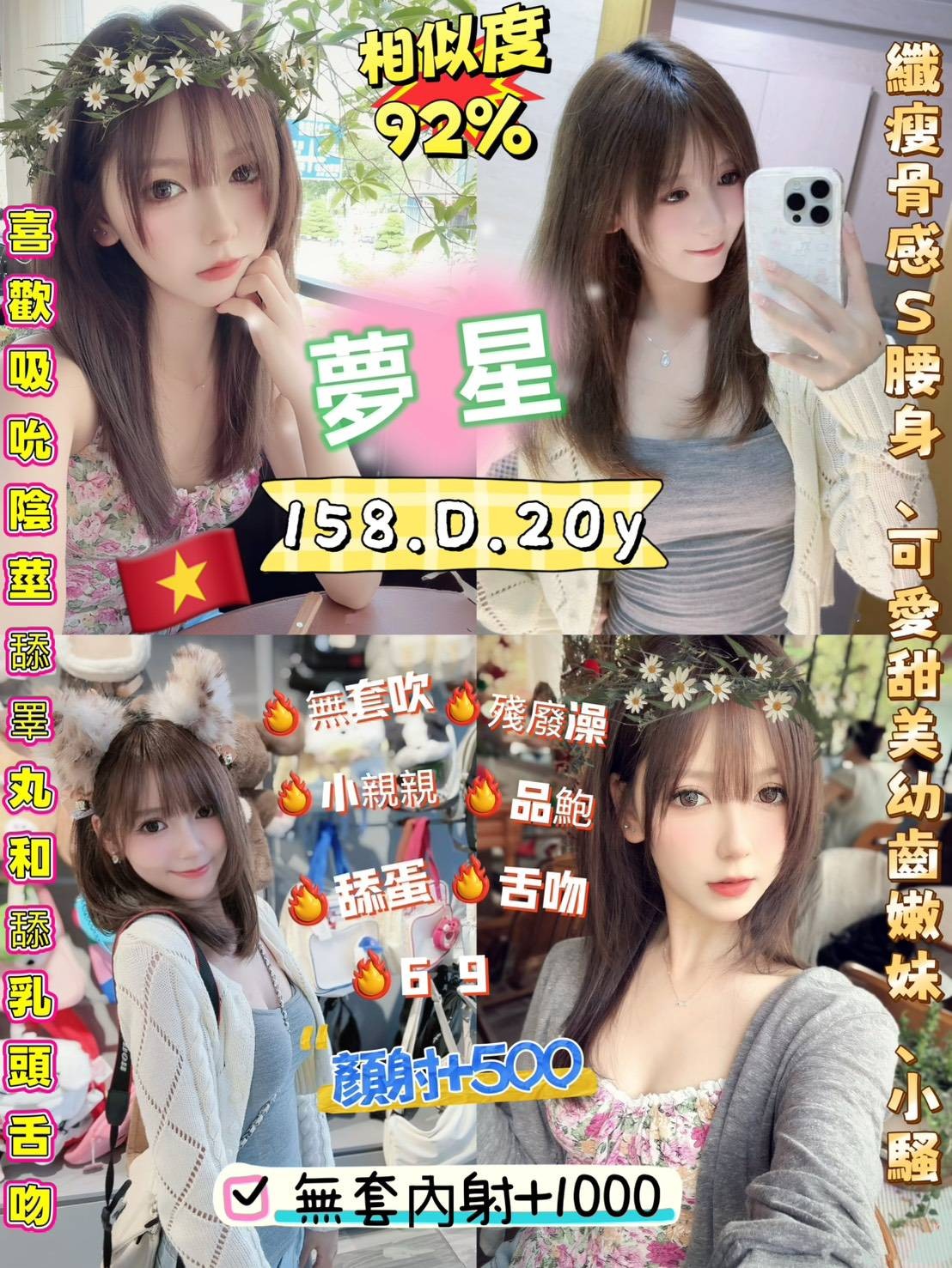 舌吻/無套吹/奶炮/69/品鮑/殘廢澡/按摩/無套+2000/顏射+500