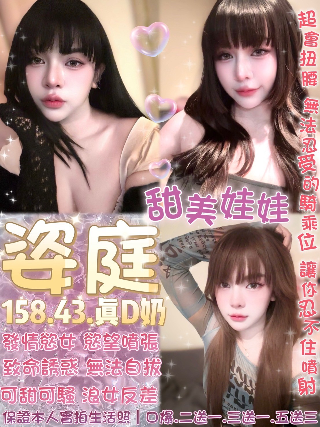 無套吹 共浴 按摩 小親親 舌吻視感覺 毒龍 深喉嚨 品鮑 舔蛋 69 胸推 屁推 雙龍 雙飛 奶炮 自慰秀 絲襪(客自備 情趣用品(客自備