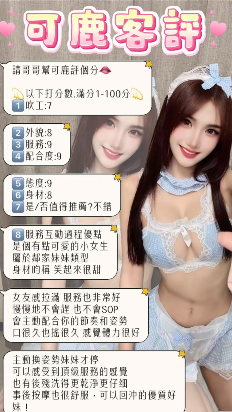 *可配合: 高跟鞋 性感睡衣 絲襪(需自備)