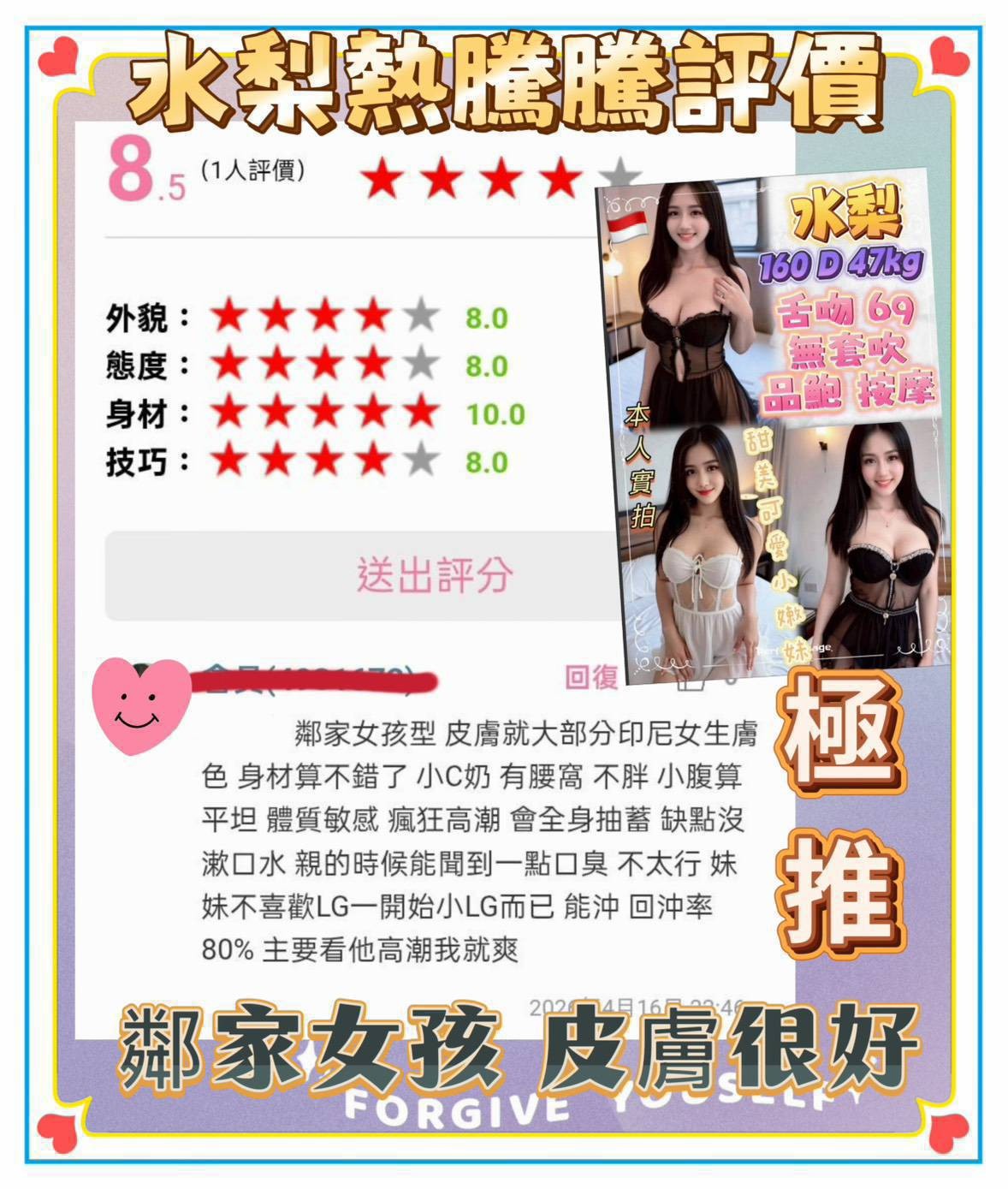 印尼美女🇮🇩水梨160 D 47kg