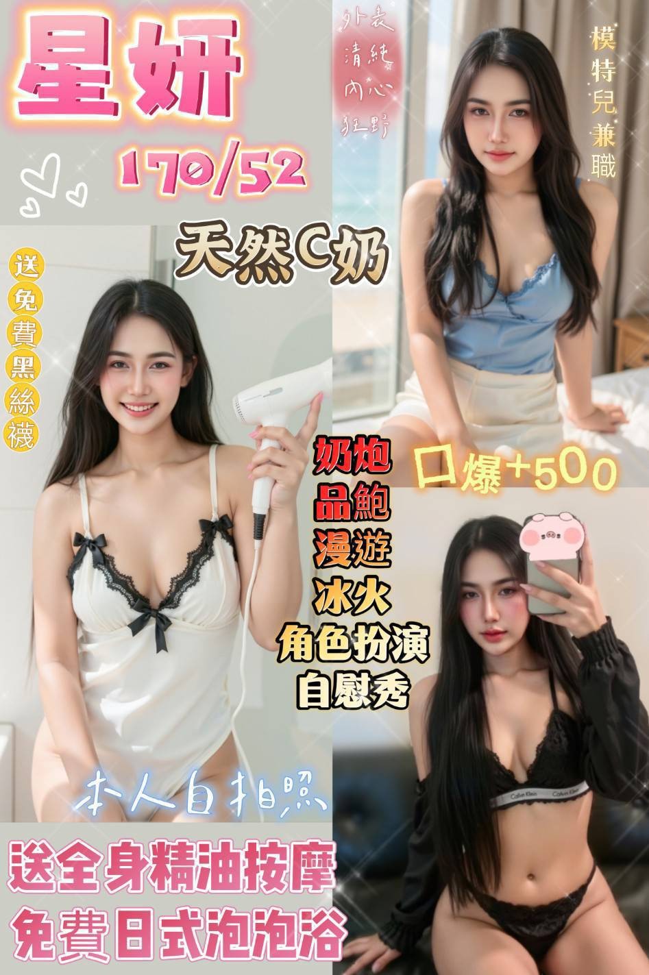 無套吹/戴套做/按摩/屁推/奶炮/舌吻/胸推/品鮑/69/舔蛋/冰火